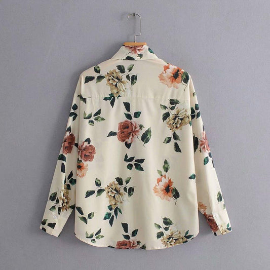Cute Vintage Flower Print Blouse Shirts - Long Sleeve Elegant