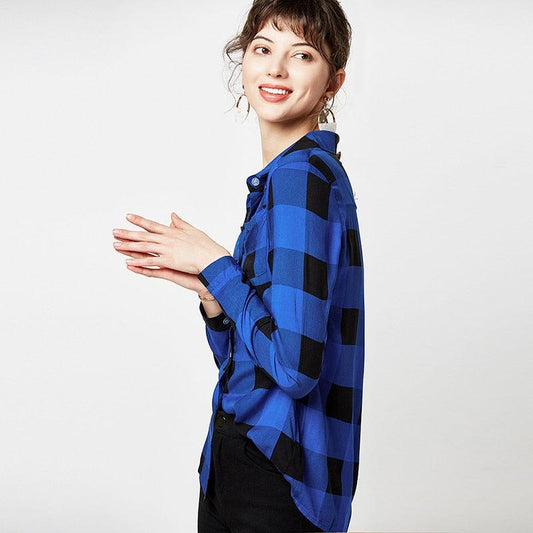 New Arrival Women Blouse -Long Sleeve Plaid Shirt - Turn Down Collar - Button Up (TB4)