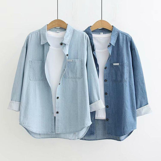 Leisure Cute Fall Shirt - Blue Button Shirts - Long