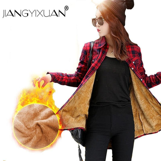Warm Lattice Women Cotton Thickening Jacket Plaid Shirt - Blouses Shirts Female Tops (D19)(TB4)