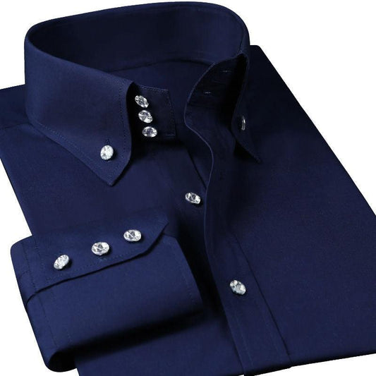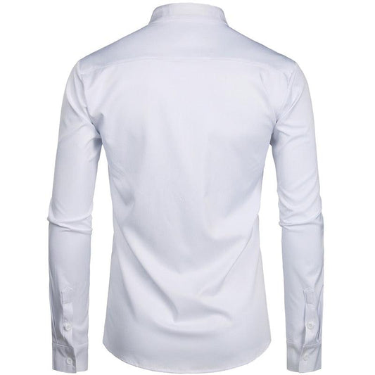 Trending Banded Collar Dress Shirt - Men Slim Fit Long Sleeve Casual Button Down Shirts (TM1)(T2G)