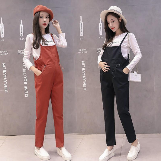 Cotton Maternity Bib Pants- Jumpsuit - Pregnant - Pregnancy Drawstring