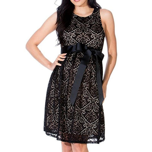 Maternity Lace Dress - High Waist Sleeveless Ribbon - Pregnancy