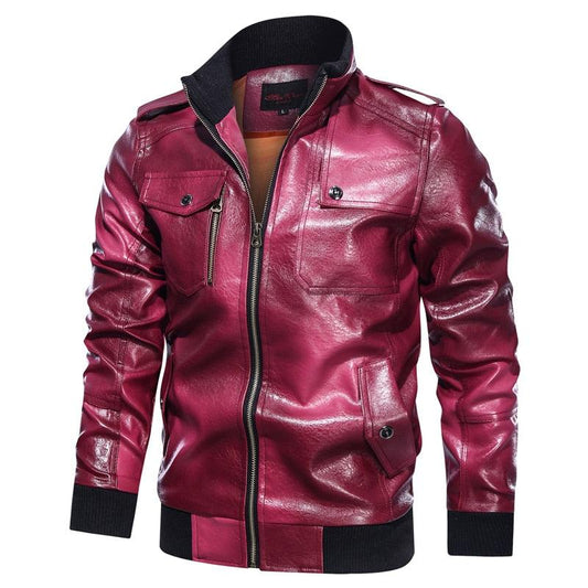 Men's Leather Jacket - Motorcycle PU Leather Stand Collar Casual Windbreaker Slim Coat (TM3)