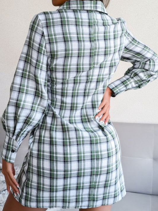 Plaid Button Down Tie Front Shirt Dress