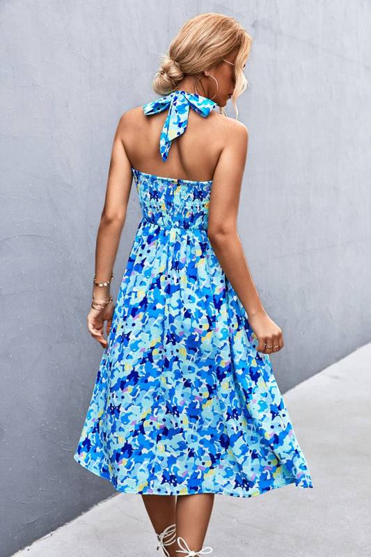 Floral Smocked Halter Neck Dress