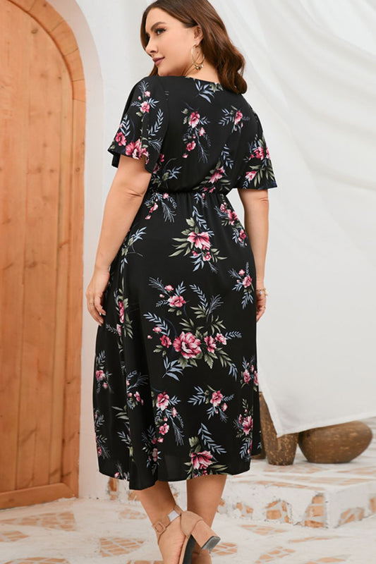 Plus Size Floral Short Sleeve Split Dress