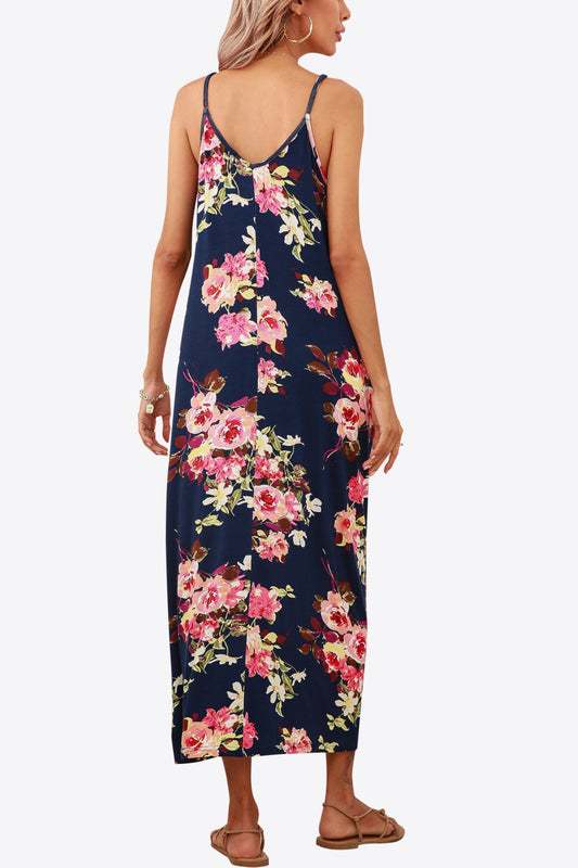 Floral Tie Waist Ruffle Hem Sleeveless Dress