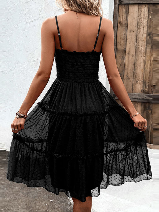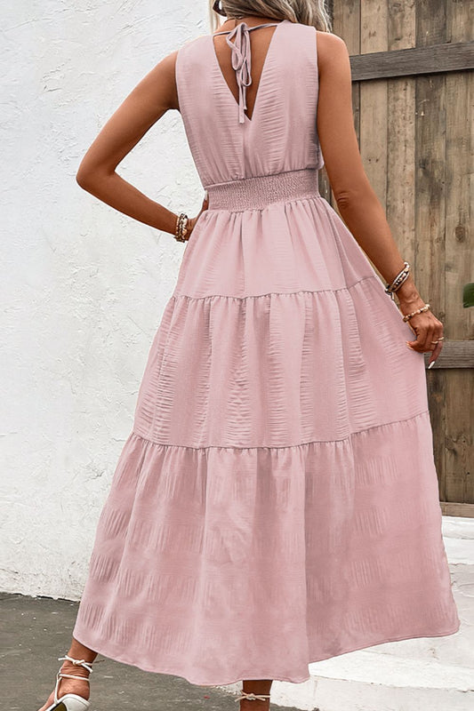 V-Neck Smocked Waist Sleeveless Tiered Dress