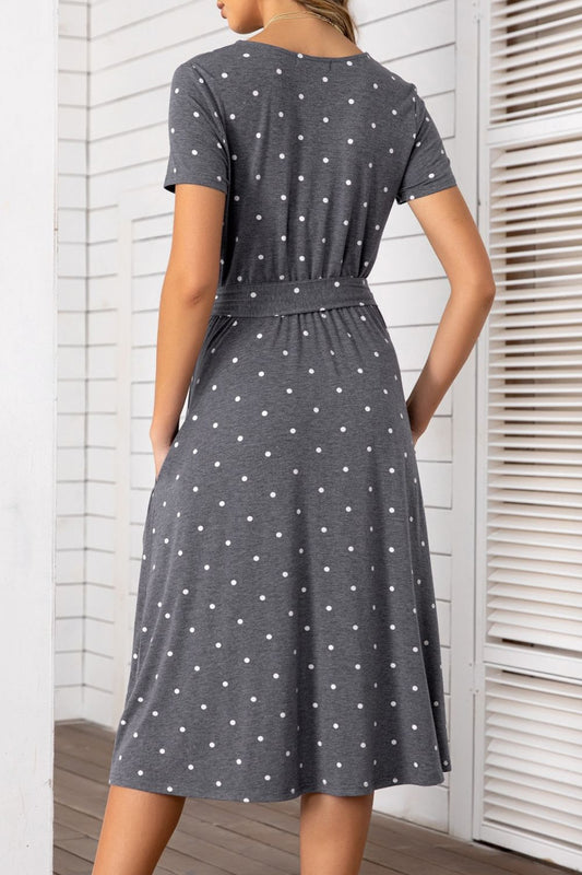 Ditsy Floral Tie Front Flounce Sleeve Dress