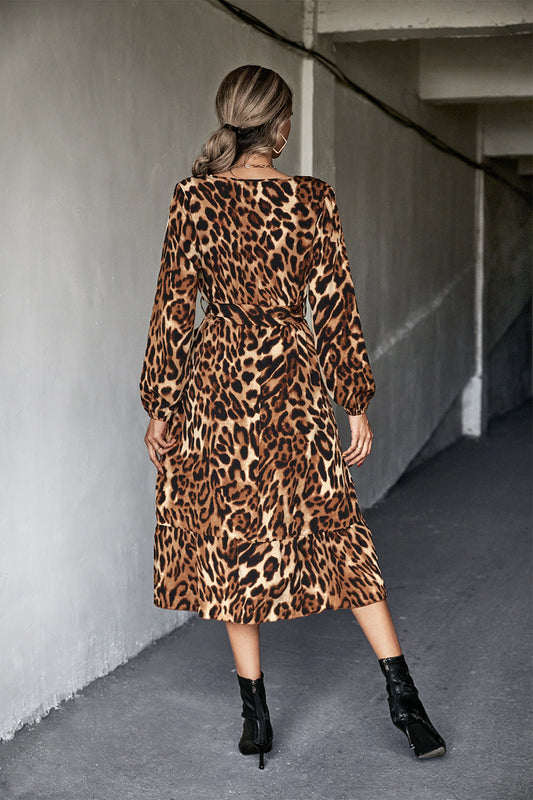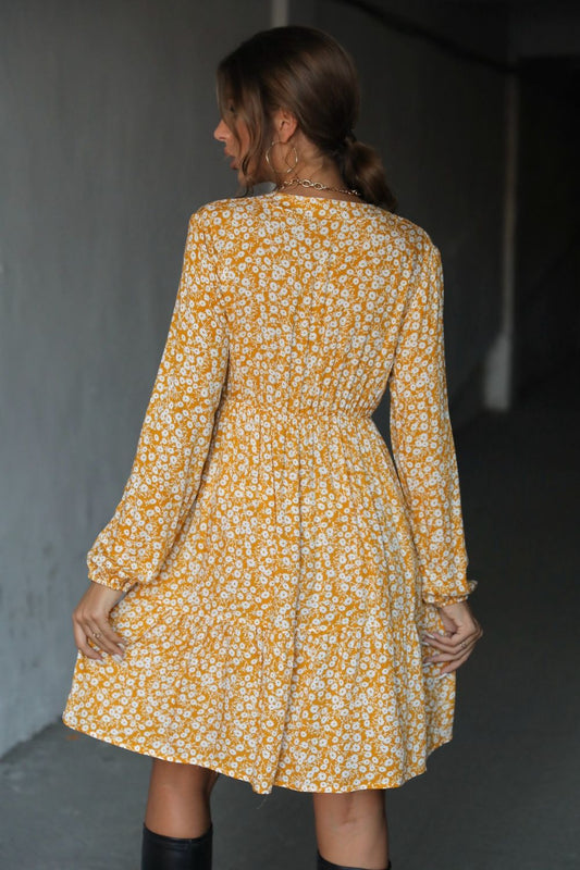 Floral Tie Neck Buttoned Balloon Sleeve Dress