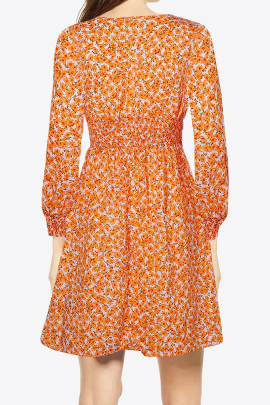 Floral Tie-Shoulder Frill Trim Smocked Dress
