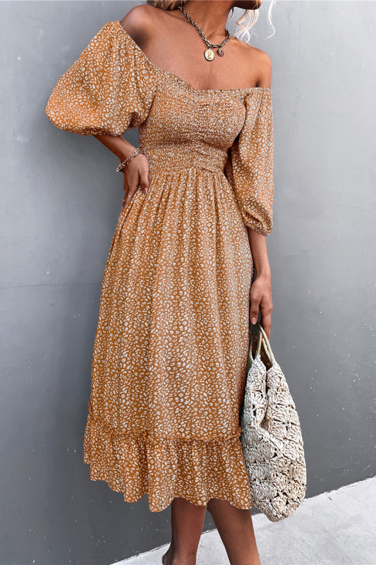 Printed Off-Shoulder Ruffle Hem Midi Dress