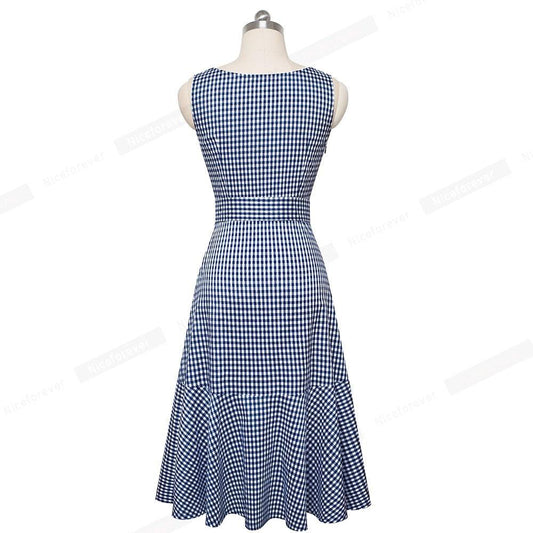 Nice New Spring Casual Plaid Sleeveless Dress - With Sash A-Line Women Flare Swing Dress (BWM)(WS06)(BCD1)