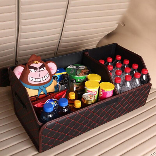 Car Organizer Trunk Storage Bag - PU Leather Trunk Stowing Tidying Universal Auto Organizers Box (3LT1)(F89)