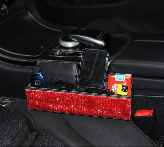 Rhinestone Crystal Leather Car Seat Crevice Storage Box - Multi-purpose Auto Gap Organizers (3LT1)