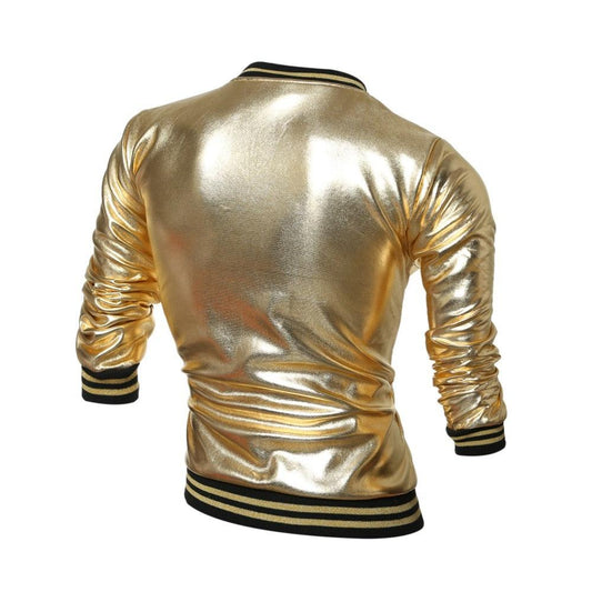 Men's Golden Jacket Slim Fit Casual Hooded Coat - Bomber Zipper Outwear Clothing (2U100)