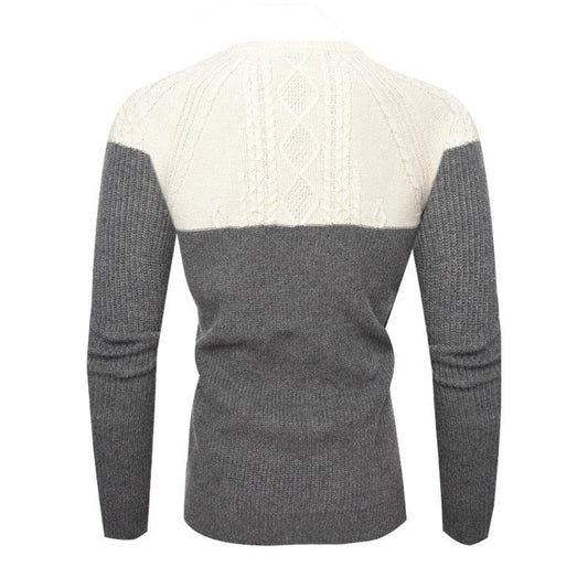 Men Winter Sweater - Knitting Pullover Men's Patchwork O-neck Sweater - Casual Loose Knitted Pullovers (2U100)