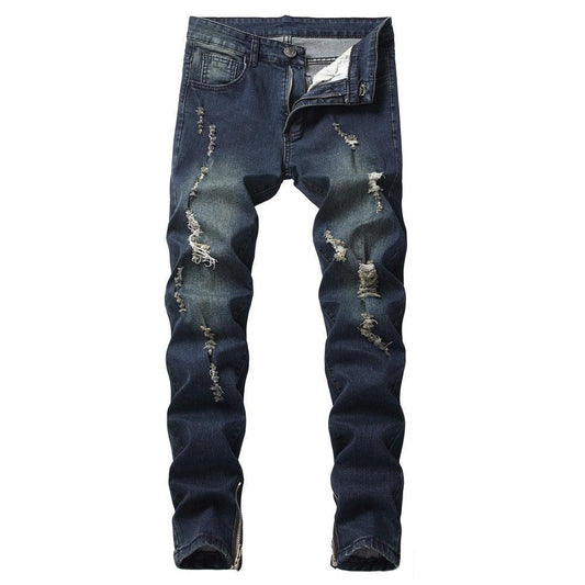 Men's Hip Hop Ripped Jeans - New Slim Fit Hole Men's Zipper Pencil Pants (1U9)