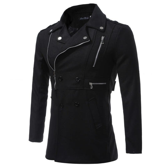 Great Winter Men's Long Woolen Coat - Slim Fit Warm Men Overcoat Double Breasted (3U100)