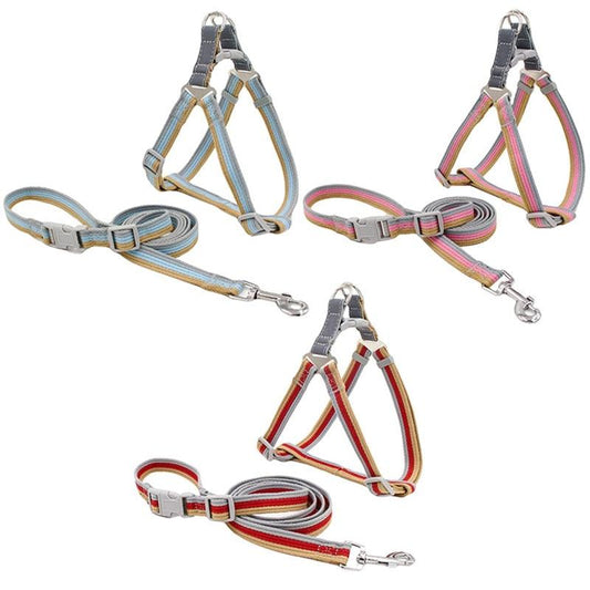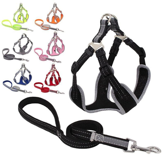 Pet Dog Harness And Leash Set - Adjustable Reflective Breathable Mesh Vest Harnesses Traction Rope (2U70)