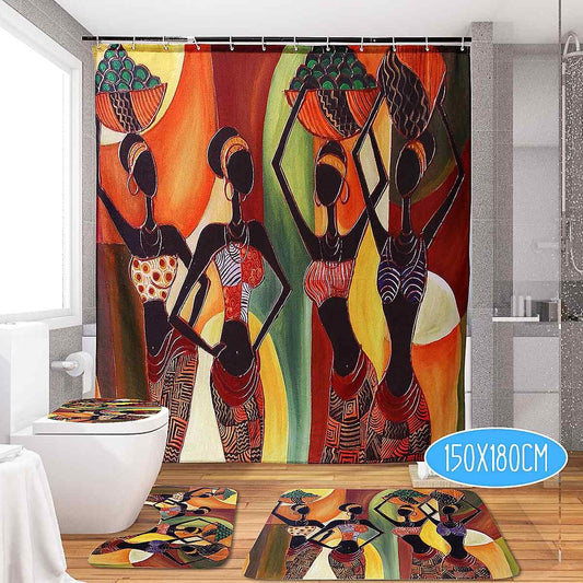 4pcs/set African Women Waterproof Shower Curtain with Africa Girl Non-Slip Bath Mat Rugs Carpet Kit (B&2)(B&4)(1U65)
