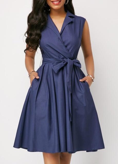 Cute Summer Dress - Women Casual Plus Size Slim Solid A Line Long Dresses - Sexy Elegant Formal Office V Neck Party (BWM)(WS06)(TP5)