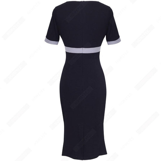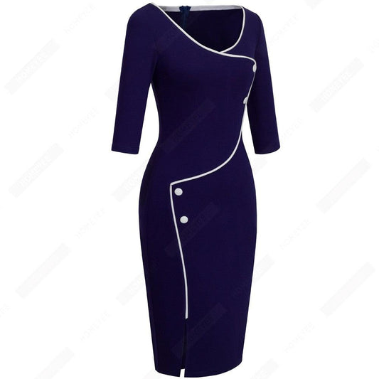 Cute Pencil Elegant Brief Button Elegant Solid Color Retro Round Neck Bodycon Office Lady Dress (BWM)(TP5)