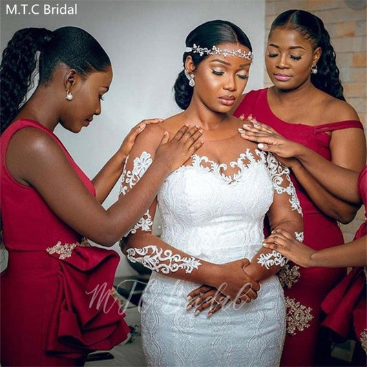 Gorgeous Red Mermaid African Bridesmaid Dresses - Gold Lace Long Dress - Plus Size - Wedding & Prom Guest Dress (WSO2)