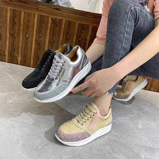 Gorgeous Fashion Snake Print Sneakers - Glitter Crystal Casual Shoes - Big Size (3U41)(3U12)