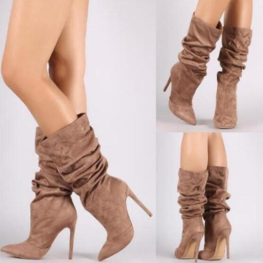 Gorgeous Women Pleated Mid Calf Boots - Thin High Heels Women's Pointed Toe Sexy Pumps (3U38)(3U107)(3U36)