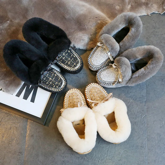 Trending Winter 100% Genuine Leather Real Wool Women Flats New Fashion Female - Plus Size Snow Shoes (FS)(CD)(1U40)(1U38)(1U107)