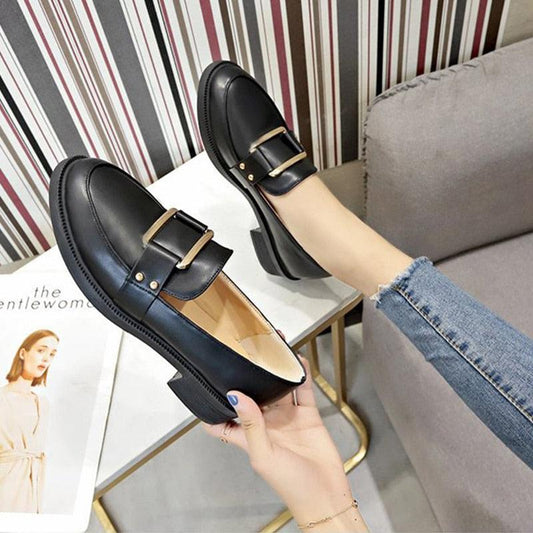 Women's Elegant Flats Office Ladies Comfortable Shoes - Loafers Metal Decoration Slip On Shoes (2U40)