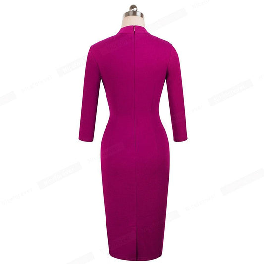 Great Vintage Pure Color Retro Round Neck Wear - Business Office Party Elegant Women Dress (1U30)(1U20)(1U35)