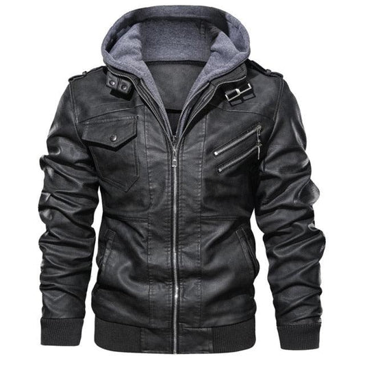 Black Hooded Leather Jacket - Men Fake Two Pieces Zipper Male Leather Jackets And Coat (D100)(TM3)