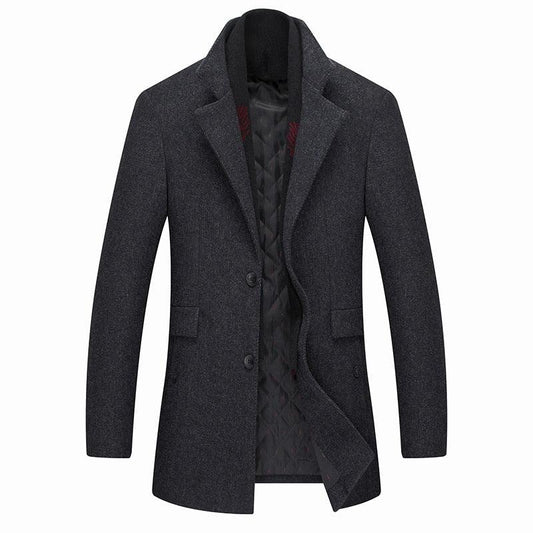 Winter New Wool Blend Coats - Quality Men's Business Casual Wool Overcoat Long Coat Jacket (TM4)(TM3)