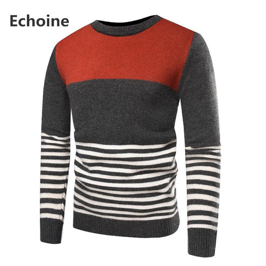 Winter Sweater Striped Pullover - Men's Patchwork O Neck Knitting Sweater - Winter Casual Loose Knitted Pullovers (2U100)
