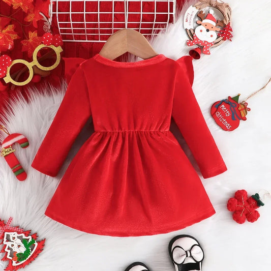 Dress For Kids 3-24 Months Newborn Long Sleeve Cute Cartoon Elk Red Suede Christmas Princess Formal Warm Dresses For Baby Girl