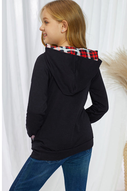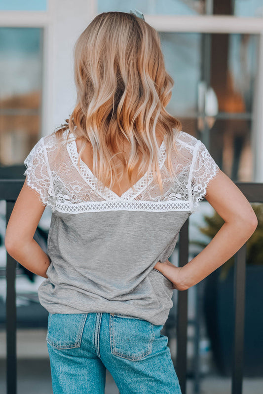 Girls Swiss Dot Spliced Lace Notched Blouse