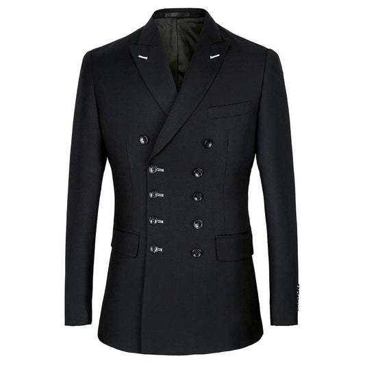 Men's Suits Slim Fit New Fashion Suit - Double Breasted Peak Lapel Navy Blue Black Suit (T1M)