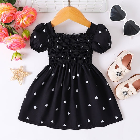Girls Frilled Notched Neck Puff Sleeve Dress