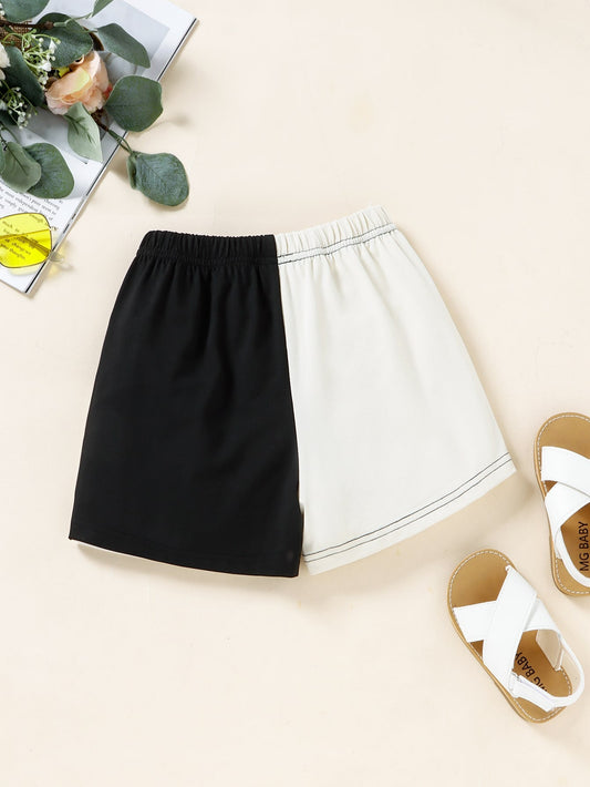 Color Block Elastic Waist Shorts
