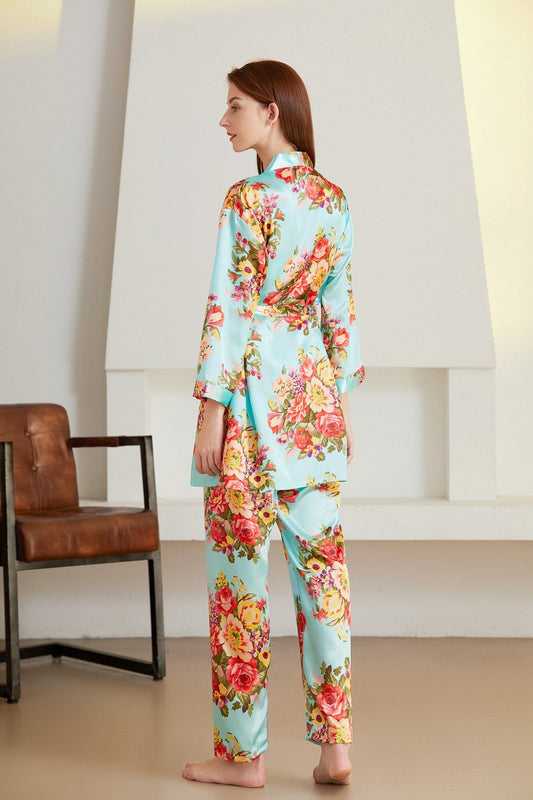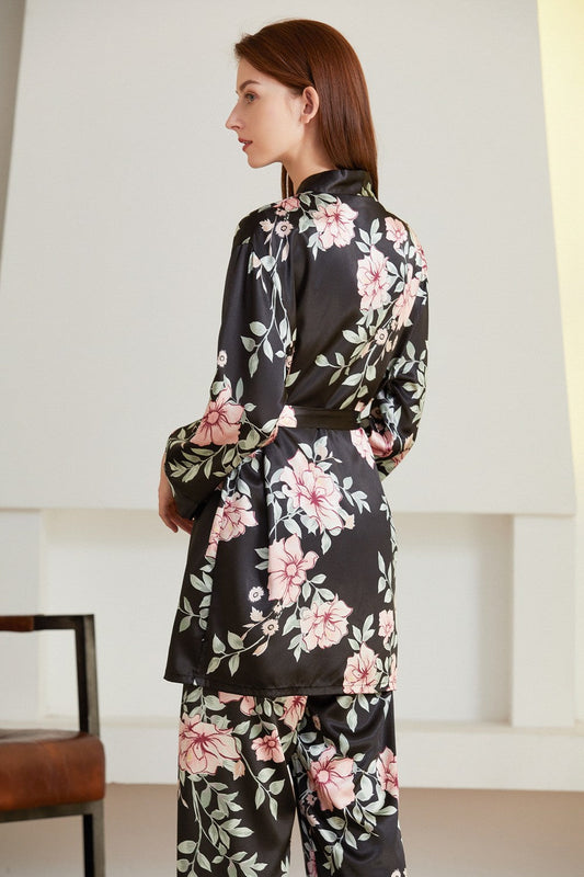 Plaid Contrast Piping Button-Up Longline Lounge Top