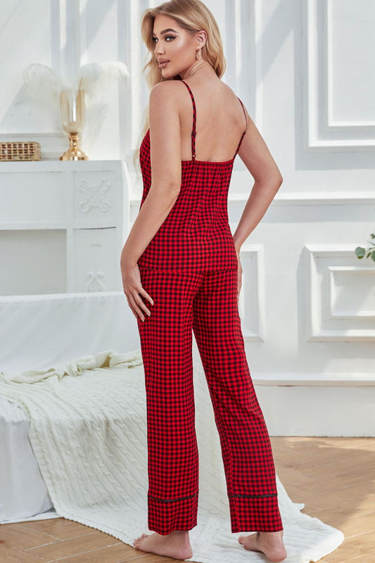 Gingham V-Neck Cami and Tied Pants Lounge Set