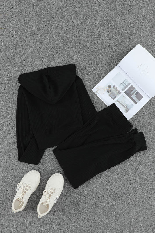 Zip-Up Ribbed Hoodie and Joggers Lounge Set