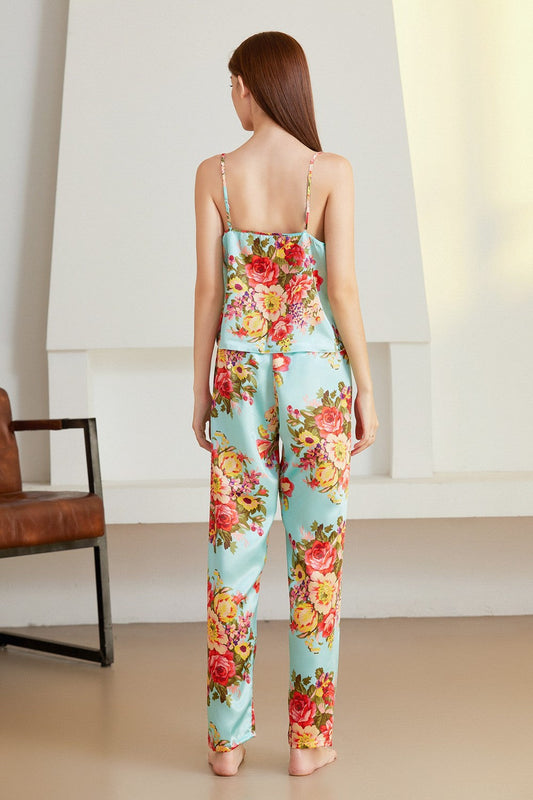 Floral V-Neck Satin Cami and Pants Pajama Set