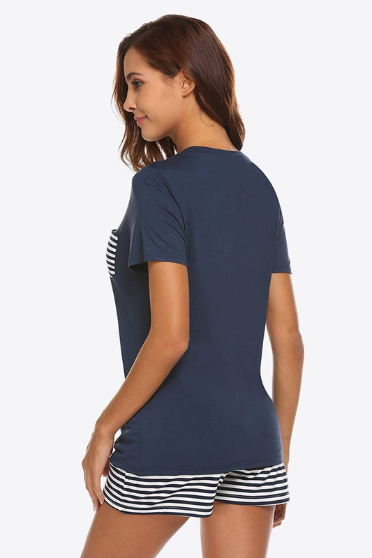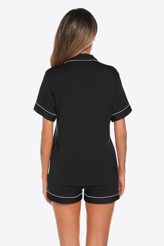 Contrast Piping Button Front Top and Shorts Lounge Set