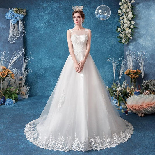 Sexy Pretty Boat Neck Lace Up Royal Dress - Train A Line Wedding Dress - Luxury Beaded Princess - Bride Gown Robe (WSO1)