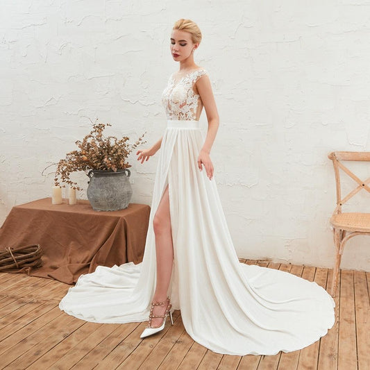 Sexy Wedding Dresses - Walk Beside You Sleeveless Chiffon Beach Dress - High Split Bride Gowns (WSO1)