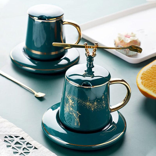 Ceramic Coffee Cup With Lid And Spoon Set Cup With Milk Afternoon Tea Christmas Creative Gift (1AK1)